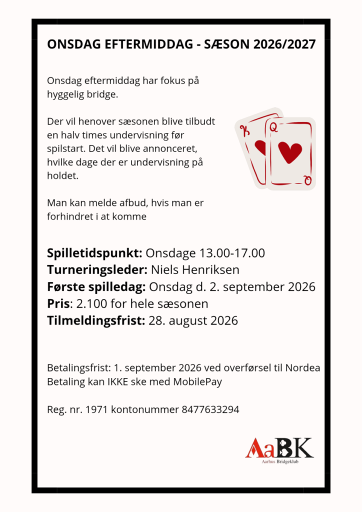 Onsdag eftermiddag har fokus på hyggelig bridge.