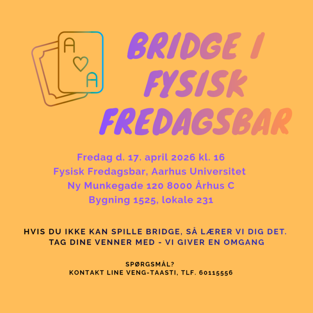 Måske har I allerede bemærket det, men vi forsøger at få fuld fart i Ungdomsbridgen. Indtil videre går det godt, men vi kan sagtens bruge noget mere hjælp til at sprede budskabet. Der er tre arrangementer planlagt i Århus i den kommende tid, og der kan sagtens komme flere til.
